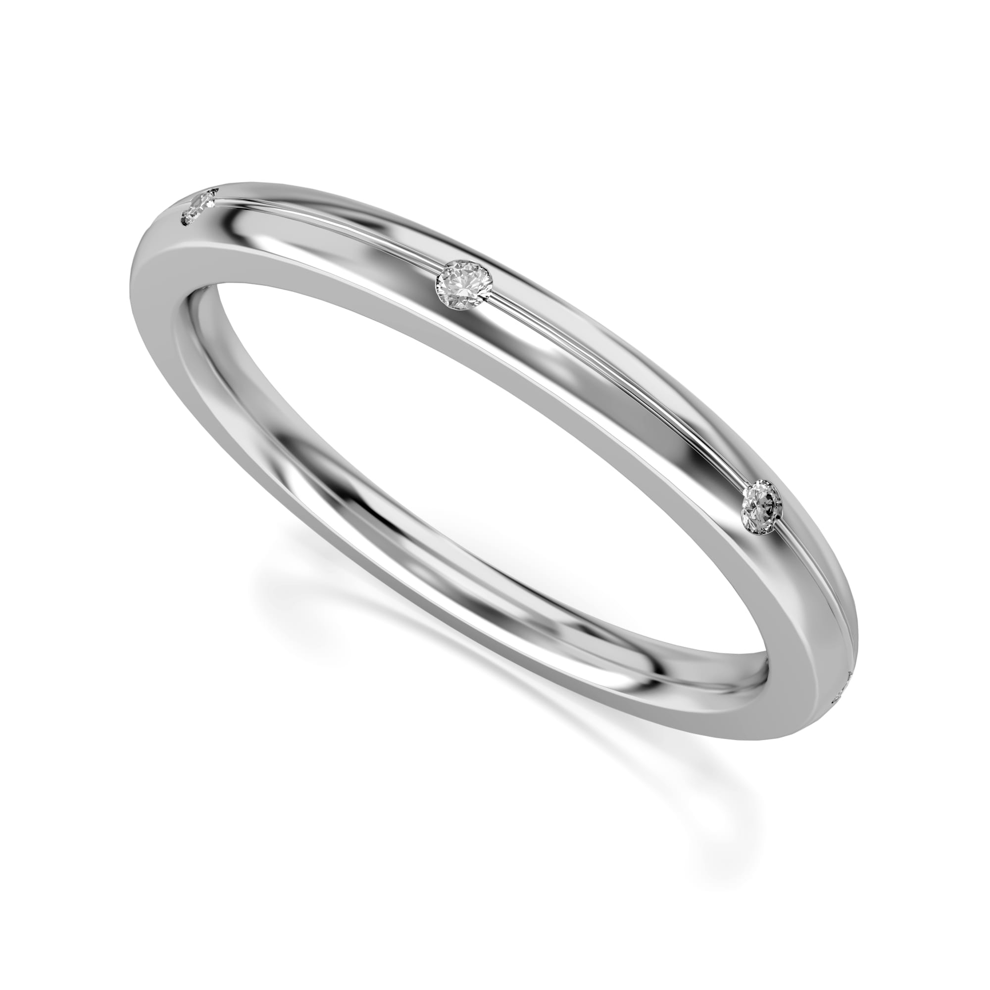 Dzięki niewielkiej szerokości - 2,2 mm - całość ma niezwykle lekki i elegancki charakter. Kamienie na całym obwodzie łączy delikatne nacięcie. Wewnątrz obrączki znajduje się poprawiająca komfort noszenia soczewka.