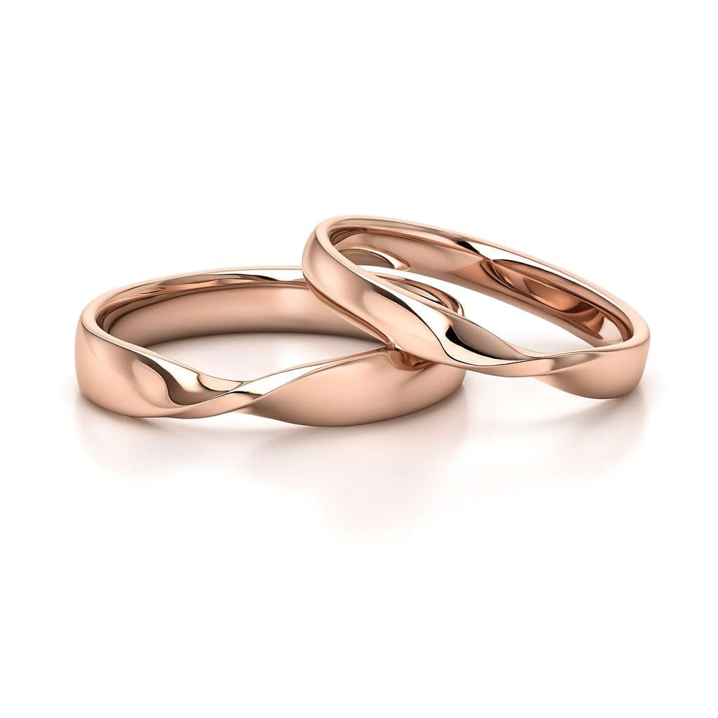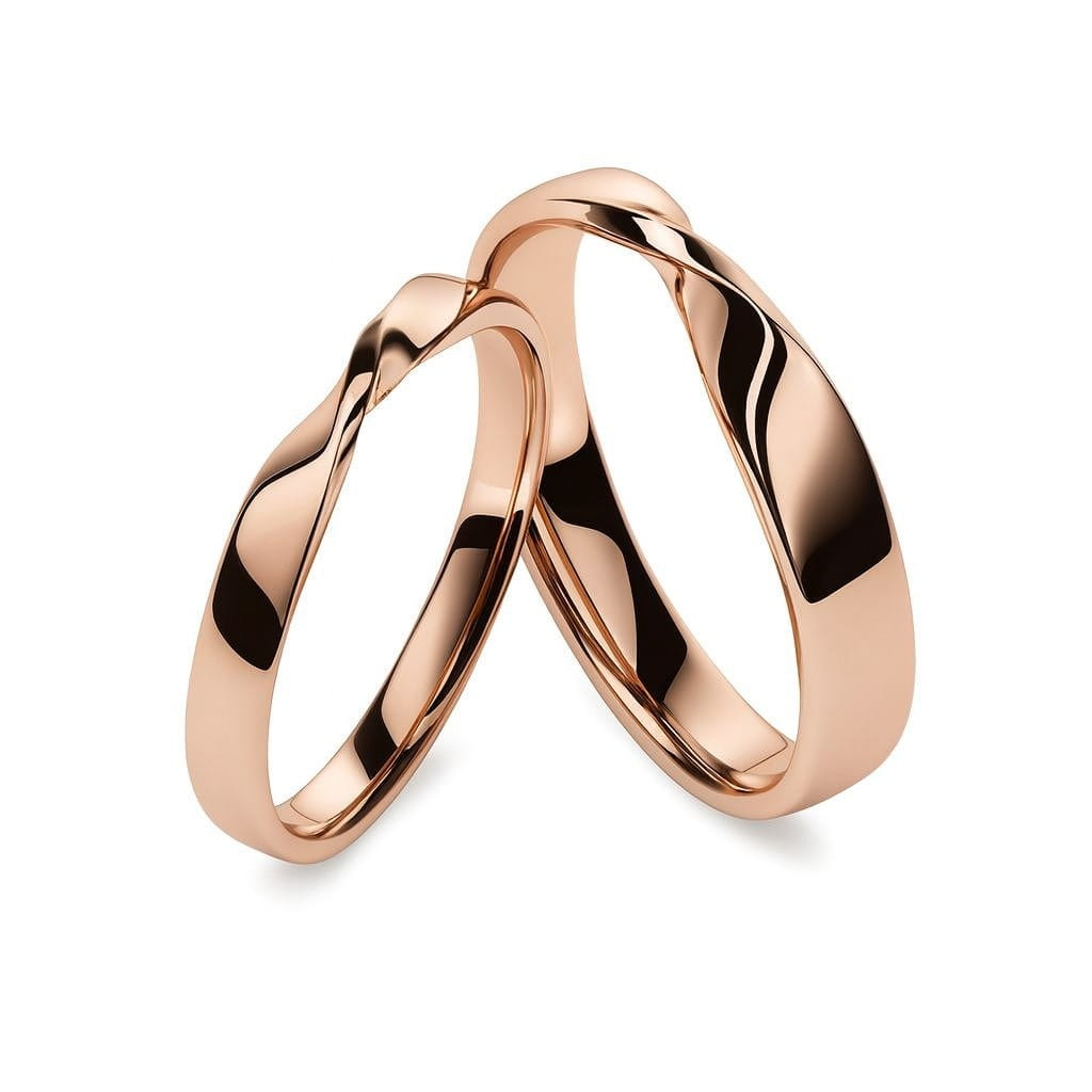 Szukasz wyjątkowych obrączek ślubnych o nowoczesnym designie? Te obrączki z motywem wstęgi Möbiusa zachwycają subtelnym skręceniem, które nadaje im unikalny, geometryczny kształt. Wykonane z czerwonego złota wpasują się w gust tych, którzy szukają alternatywy dla żółtego złota. Forma nawiązująca do nieskończonej linii symbolizuje trwałą i nieprzerwaną więź między dwojgiem ludzi.